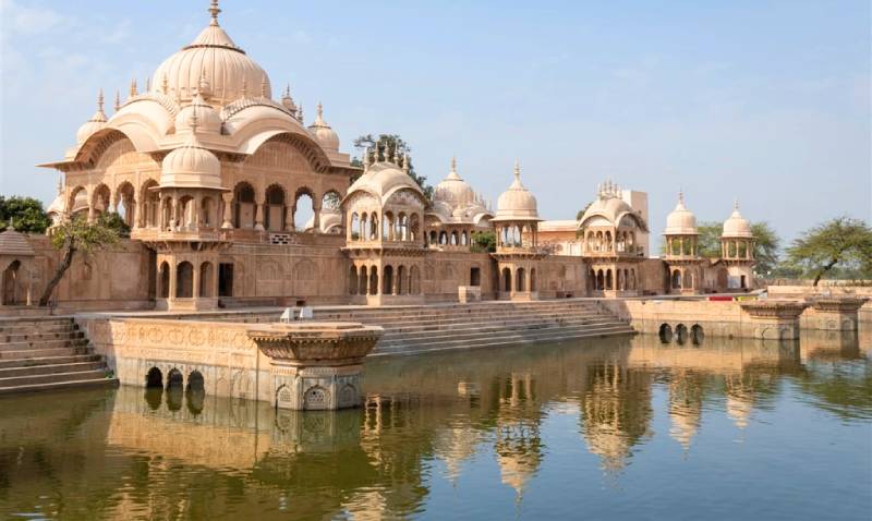 Kusum Sarovar is a serene reservoir near Govardhan, surrounded by intricately carved cenotaphs. It is believed that Radha and the Gopis collected flowers here for Krishna. The picturesque site, with its stunning reflections in the water and peaceful atmosphere, is perfect for meditation and spiritual rejuvenation.